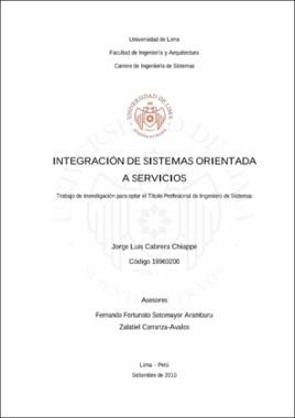 Cabrera Chiappe, J. L. (2010) Integración de sistemas orientada a servicios [Trabajo de investigación para optar el Título Profesional de Ingeniero de Sistemas, Universidad de Lima]. Repositorio Institucional de la Universidad deLima. https://hdl.handle.net/20.500.12724/15587Editor