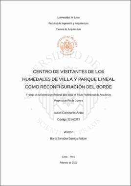 La investigación presente tiene la finalidad de identificar las variables problemáticas de este escenario y proponer una respuesta mediante la reconfiguración el borde del área natural, como forma de proteger la biodiversidad y dotar de espacios de calidad a los ciudadanos la zona. A partir de esta premisa se plantea el proyecto de centro de visitantes y parque lineal que propone un enfoque sistémico de espacios que configuren un nuevo borde para el humedal, tomando en cuenta características intrínsecas del lugar desde su origen, la naturaleza de su funcionamiento, los ecosistemas y biodiversidad, la composición urbana en el borde y la evolución de estos factores a lo largo de su existencia. La idea es que finalmente se aporte a la ciudad con la regeneración de un ecosistema importante, con infraestructura turística y cultural de calidad, establecer un precedente para proyectos similares en el futuro y con la mejora general en la calidad de vida de población inmediata. Wetlands are one of the most important and critical ecosystems in the world for sustainable development, due to the ecosistemic, economic and cultural benefits they provide. However, their relevance is often underestimated. Pantanos de Villa are a type of wetland that is part of the “Biological Corridor of the Central Coast of Peru” and is a fundamental part of the ecological infrastructure of the