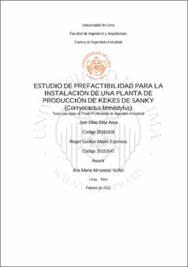 Diaz Asca, J. E. y Maire Espinoza, R. G. (2022). Estudio de prefactibilidad para la instalación de una planta de producción de kekes de sanky (Corryocactus brevistylus) [Tesis para optar el Título Profesional de Ingeniero Industrial, Universidad de Lima]. Repositorio institucional de la Universidad de Lima. https://hdl.handle.net/20.500.12724/15639Editor