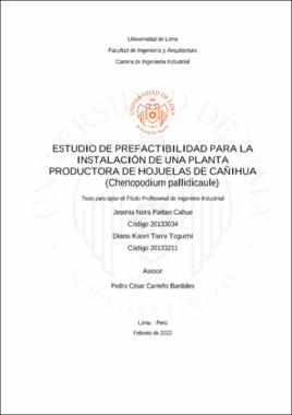 Estudio de prefactibilidad para la instalación de una planta productora de hojuelas de cañihua (Chenopodium pallidicaule)