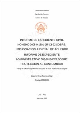 Informe de Expediente Civil No:02900-2006-0-1801-JR-CI-22 Sobre: Impugnación Judicial de Acuerdo. Informe de Expediente Administrativo 502-2016/CC1 Sobre: Protección al Consumidor