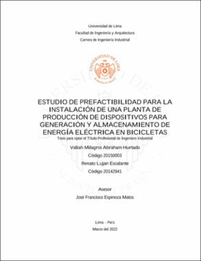 Abraham Hurtado, V. M. y Lujan Escalante, R. (2022). Estudio de prefactibilidad para la instalación de una planta de producción de dispositivos para generación y almacenamiento de energía eléctrica en bicicletas [Tesis para optar el Título Profesional de Ingeniero Industrial, Universidad de Lima]. Repositorio institucional de la Universidad de Lima. https://hdl.handle.net/20.500.12724/15974Editor