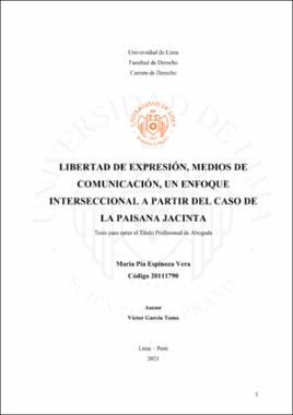 En el Perú, la discriminación étnico-racial y la discriminación basada en género constituyen problemas estructurales y de larga data. El feminicidio por la agilidad y crudeza de tornar la vida a muerte es que ha sido posicionada, por los medios de comunicación en noticiarios y magazines; sin embargo, la indignación colectiva que a prima facie parece despertar se esfuma en cuestión de horas. El feminicidio como es solo la punta del iceberg o el final fatídico en la escalada de violencia, la cual inicia con una violencia psicológica o moral, que se manifiesta a través de expresiones o conductas que necesitan ser repetidas constantemente para así condensarse en la cotidianeidad, pero que en esencia cargan el gen que reproduce y perpetúa la desigualdad étnico-racial y de género. Es aquí donde analizar estereotipos, que por si solos no son negativos, muchos de estos se fundan en diferencias fenotípicas o biológicas para prescribir patrones de conductas de distinción, exclusión o restricción que terminan menoscabando o anulando el reconocimiento, goce o ejercicio de derechos de mujeres o poblaciones en situación de vulnerabilidad. Los estereotipos étnico-raciales y de género actúan en la escala más baja de violencia porque permiten el control económico, de sociabilidad, movilidad, el desprecio estético y sexual, la descalificación intelectual y profesional. El Derecho Internacional de los Derechos Humanos a través de Tratados Internacionales de Derechos Humanos ha recogido su preocupación por lo actos de discriminación. Nuestro derecho interno no ha sido esquivo ante las mismas situaciones de violencia y ha venido implementando compromisos y obligaciones internacionales asi como dando diversas normas y políticas públicas. Sin embargo, las acciones que el Estado realice son y serán insuficientes, hasta que no se tome en cuenta la necesidad de trabajar en conjunto o construtir sinergia con la sociedad civil y las empresas privadas, por la razón que la escalada de violencia se da en ámbitos públicos y privados. El caso de la paisana Jacinta devela la importancia de los medios de comunicación en la generación, reproducción y difusión de estereotipos étnico-raciales y de género. Partiendo de la Constitución Política del Perú, la Convención sobre la Eliminación de Todas las Formas de Discriminación contra la Mujer, Convención Interamericana para Prevenir, Sancionar y Erradicar la violencia contra la Mujer “Belem do Pará” y la Ley de Radio y Televisión como marco jurídico es que esta tesis propone una perspectiva alterna para la libertad de expresión manifestada en medios de comunicación, a través del enfoque interseccional. Ello no solo con la finalidad de proteger la identidad de las mujeres indígenas de los andes que se ven menoscabadas por la discriminación interseccional, sino también para ampliar el espectro de conciencia de identidades que habitan el territorio peruano.