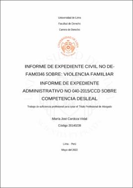 Informe de Expediente Civil No DE-FAM0346 Sobre: Violencia Familiar. Informe de Expediente Administrativo No 040-2015/CCD Sobre Competencia Desleal