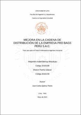 Bernuy Macalupu, A. I. y Puerta Salazar, S. (2022). Mejora en la cadena de distribución de la empresa Pro Bags Perú S.A.C.[Tesis para optar el Título Profesional de Ingeniero Industrial, Universidad de Lima]. Repositorio institucional de la Universidad de Lima. https://hdl.handle.net/20.500.12724/16141Editor