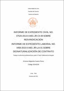 Suarez Ponce, X. A. (2021). Informe de Expediente Civil No. 07529-2013-0-0401-JR-CI-09 Sobre Reivindicación. Informe de Expediente Laboral No. 0458-2015-0-0401-JR-LA-01 Sobre Desnaturalización de Contrato [Trabajo de suficiencia profesional para optar el Título Profesional de Abogado, Universidad de Lima]. Repositorio institucional de la Universidad de Lima. https://hdl.handle.net/20.500.12724/16170Editor