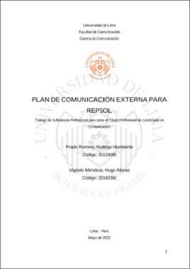 Prado Romero, R.H. y Vignolo Mendoza, H.A. (2022). Plan de comunicación externa para Repsol [Trabajo de suficiencia profesional para optar el Título Profesional de Licenciado en Comunicación, Universidad de Lima]. Repositorio Institucional de la Universidad de Lima. https://hdl.handle.net/20.500.12724/16325Editor