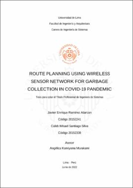 Ramirez Alarcon, J. E. y Santiago Silva, C. M. (2022). Route planning using wireless sensor network for garbage collection in COVID-19 pandemic [Tesis para optar el Título Profesional de Ingeniero de Sistemas, Universidad de Lima]. Repositorio institucional de la Universidad de Lima. https://hdl.handle.net/20.500.12724/16461Editor