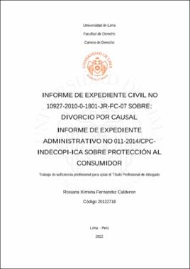Informe de expediente civil No 10927-2010-0-1801-JR-FC-07 Sobre: divorcio por causal. Informe de expediente administrativo No 011-2014/CPC-INDECOPI-ICA Sobre protección al consumidor