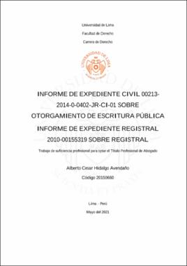 Informe de Expediente Civil 00213-2014-0-0402-JR-CI-01 Sobre otorgamiento de Escritura Pública. Informe de Expediente Registral 2010-00155319 Sobre registral