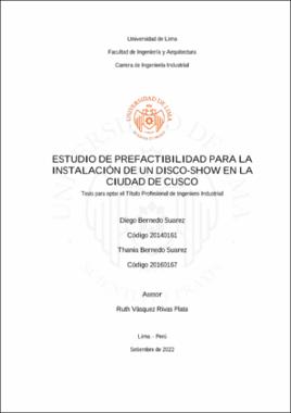 Bernedo Suarez, D. y Bernedo Suarez, T. (2022). Estudio de prefactibilidad para la instalación de un disco-show en la ciudad de Cusco [Tesis para optar el Título Profesional de Ingeniero Industrial, Universidad de Lima]. Repositorio institucional de la Universidad de Lima. https://hdl.handle.net/20.500.12724/16728Editor