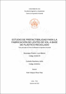 Bocanegra Pizarro, L. A. & Corbetto Peschiera, A. (2022). Estudio de prefactibilidad para la fabricación de lentes de sol a base de plástico reciclado [Tesis para optar el Título Profesional de Ingeniero Industrial, Universidad de Lima]. Repositorio institucional de la Universidad de Lima. https://hdl.handle.net/20.500.12724/17148Editor