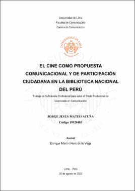 Mateo Acuña, J.J. (2022). El cine como propuesta comunicacional y de participación ciudadana en la Biblioteca Nacional del Perú [Trabajo de suficiencia profesional para optar el Título Profesional de Licenciado en Comunicación, Universidad de Lima]. Repositorio Institucional de la Universidad de Lima. https://hdl.handle.net/20.500.12724/17214Editor