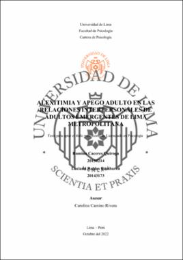 Alexitimia y apego adulto en las relaciones interpersonales de adultos emergentes de Lima Metropolitana