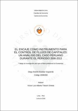Escobar Izquierdo, D. A. (2016). El encaje como instrumento para el control de flujos de capitales: un análisis del caso peruano durante el periodo 2006-2013 (Trabajo de investigación para optar el Título Profesional de Economista). Universidad de Lima.Editor
