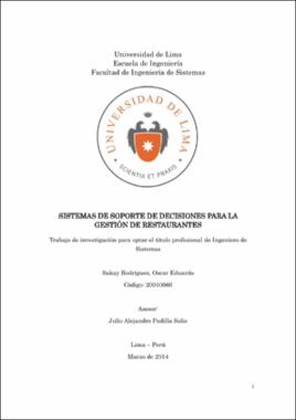 Sakay Rodriguez, O. E. (2014). Sistema de soporte de decisiones para la gestión de restaurantes [Trabajo de investigación para optar el Título Profesional de Ingeniero de Sistemas, Universidad de Lima]. Repositorio Institucional de la Universidad de Lima. https://hdl.handle.net/20.500.12724/17448Editor