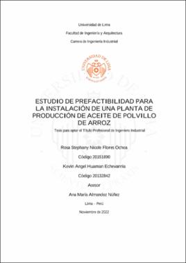 Flores Ochoa, R. S. N. & Huaman Echevarria, K. A. (2022). Estudio de prefactibilidad para la instalación de una planta de producción de aceite de polvillo de arroz [Tesis para optar el Título Profesional de Ingeniero Industrial, Universidad de Lima]. Repositorio institucional de la Universidad de Lima. https://hdl.handle.net/20.500.12724/17764Editor