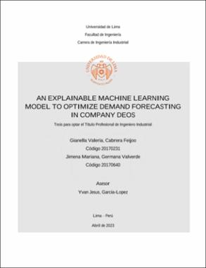 Cabrera Feijoo, G. V. & Germana Valverde, J. M. (2023). An explainable machine learning model to optimize demand forecasting in Company DEOS [Tesis para optar el Título Profesional de Ingeniero Industrial, Universidad de Lima]. Repositorio institucional de la Universidad de Lima. https://hdl.handle.net/20.500.12724/18455Editor