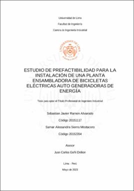 Ramon Alvarado, S. J. & Sierra Mostacero, S. A. (2023). Estudio de prefactibilidad para la instalación de una planta ensambladora de bicicletas eléctricas auto generadoras de energía [Tesis para optar el Título Profesional de Ingeniero Industrial, Universidad de Lima]. Repositorio institucional de la Universidad de Lima. https://hdl.handle.net/20.500.12724/18845Editor