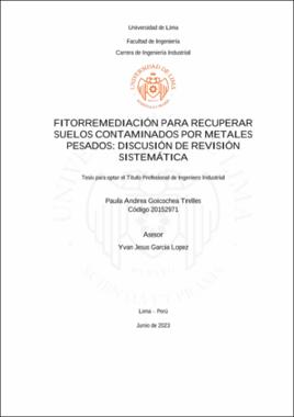 Goicochea Trelles, P. A. (2023). Fitorremediación para recuperar suelos contaminados por metales pesados: discusión de revisión sistemática [Tesis para optar el Título Profesional de Ingeniero Industrial, Universidad de Lima]. Repositorio institucional de la Universidad de Lima. https://hdl.handle.net/20.500.12724/18849Editor