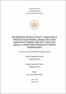 Kawakami Arevalo, S. & Veliz Torres, M. S. (2023). Increased Productivity through a Production Model Based on Lean Manufacturing and SLP Tools in Small Furniture Manufacturing Workshops [Tesis para optar el Título Profesional de Ingeniero Industrial, Universidad de Lima]. Repositorio institucional de la Universidad de Lima. https://hdl.handle.net/20.500.12724/19016Editor