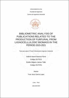 Butrica Ferre, V. N. & Jaimes Tello, E. M. (2023). Bibliometric analysis of publications related to the production of furfural from lignocellulosic biomass in the period 2015-2021 [Tesis para optar el Título Profesional de Ingeniero Industrial, Universidad de Lima]. Repositorio institucional de la Universidad de Lima. https://hdl.handle.net/20.500.12724/19254Editor