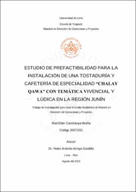 Estudio de prefactibilidad para la instalación de una tostaduría y cafetería de especialidad “Chalay Qawa” con temática vivencial y lúdica en la región Junín