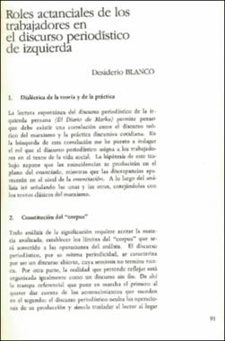 La lectura espontánea del discurso periodístico de la izquierda peruana (El Diario de Marka) permite pensar que debe existir una correlación entre el discurso teórico del marxismo y la práctica discursiva cotidiana. En la búsqueda de esta correlación me he puesto a indagar el rol que el discurso periodístico asigna a los trabajadores en el texto de la vida social. La hipótesis de este trabajo supone que las coincidencias se producirán en el plano del enunciado, mientras que las discrepancias aparecerán en el nivel de la enunciación. A lo largo del análisis iré señalando las unas y las otras, cotejándolas con los textos clásicos del marxismo.