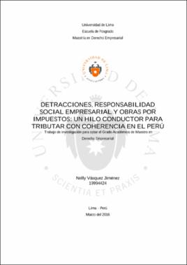 Vásquez Jiménez, N. (2016). Detracciones, responsabilidad social empresarial y obras por impuestos: un hilo conductor para tributar con coherencia en el Perú (Trabajo de investigación de maestría). Universidad de Lima.Editor
