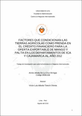 Factores que condicionan las tierras agrícolas como prenda en el crédito financiero para la oferta exportable de mango y palta en los departamentoes de Ica y Cajamarca al año 2012