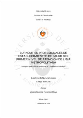 Nunura Linares, L. (2016). Burnout en profesionales de establecimientos de salud del primer nivel de atención de Lima Metropolitana. (tesis para optar el título profesional de Licenciado en Psicología). Universidad de Lima.Editor