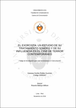 Robles Guzmán, V. C. (2016). El exorcista: un estudio de su tratamiento sonoro y de su influencia en el cine de terror contemporáneo (trabajo de investigación para optar el título profesional de Licenciada en Comunicación). Universidad de Lima.Editor