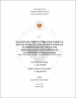 Arias Mesía, L. N. y Zapata Yarlequé, F. N. (2017). Estudio de prefactibilidad para la instalación de una planta para la elaboración de galletas enriquecidas con harina de algarroba (Prosopis pallida) (trabajo de investigación para optar el título profesional de Ingeniero Industrial). Universidad de Lima.Editor