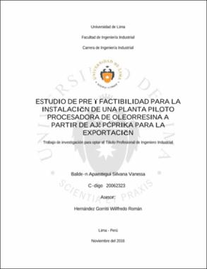 Estudio de pre-factibilidad para la instalación de una planta piloto procesadora de oleorresina a partir de ají páprika para la exportación