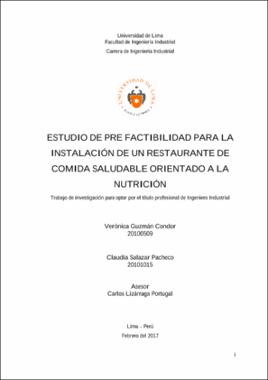 Guzmán Condor, V. y Salazar Pacheco, C. (2017). Estudio de prefactibilidad para la instalación de un restaurante de comida saludable orientado a la nutrición (trabajo de investigación para optar el título profesional de Ingeniero Industrial). Universidad de Lima.Editor