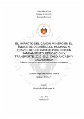 El impacto del canon minero en el índice de desarrollo humano a través de los gastos públicos en saneamiento, educación y transporte, 2010-2012: caso Ancash y Cajamarca