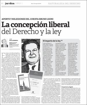 Avila Herrera. J. (8 de agosto del 2017).La concepción liberal del Derecho y la ley: aporte y reflexiones del jurista Bruno Leoni. Jurídica: Suplemento de Análisis Legal de El Peruano,11(652), 6-8. Recuperado de http://www.elperuano.com.pe/juridica.aspxEditor