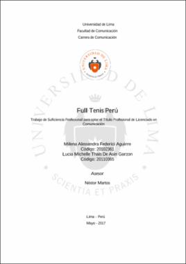 Federici Aguirre, M. A. y De Asin Garzon, L. M. T. (2017). Full tenis Perú (trabajo de suficiencia profesional para optar el título profesional de Licenciado en Comunicación). Universidad de Lima.Editor