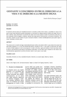 Rovegno Loayza, S. M. (2015). Gestante y concebido: entre el derecho a la vida y el derecho a la muerte digna. Lumen, (11), 105-116.Editor