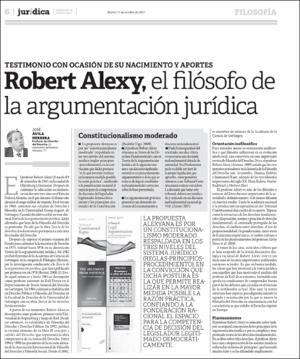 Ávila Herrera, J. (17 de octubre del 2017). Robert Alexy, el filósofo de la argumentación jurídica: testimonio con ocasión de su nacimiento y aportes. Jurídica: Suplemento de Análisis Legal de El Peruano,11(662), 6-8. Recuperado de http://www.elperuano.pe/juridica.aspxEditor