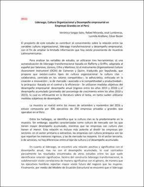 Liderazgo, cultura organizacional y desempeño empresarial en empresas grandes en el Perú