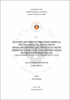 Estudio de prefactibilidad para la instalación de una planta desalinizadora que produzca agua embotellada y sal utilizando agua de mar y energía solar