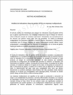 Schwarz Dáz, M. (2018). Análisis de indicadores clave de gestión (KPIs) en empresas multiproducto. Universidad de Lima, Facultad de Ciencias Empresariales y Económicas.Editor