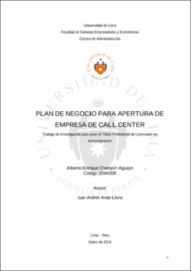 Champín Aguayo, A. E. (2018). Plan de negocio para apertura de empresa de Call Center (Trabajo de investigación para optar el Título Profesional de Licenciado en Administración). Universidad de Lima. https://hdl.handle.net/20.500.12724/6036Editor