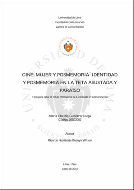 Gutiérrez Riega, M. C. (2018). Cine, mujer y posmemoria: identidad y posmemoria en La teta asustada y Paraíso (tesis para optar el título profesional de Licenciado en Comunicación). Universidad de Lima.Editor