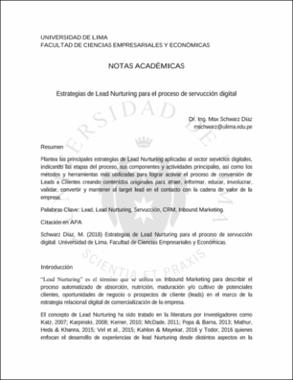 Schwarz Díaz, M. (2018). Estrategias de Lead Nurturing para el proceso de servucción digital. Universidad de Lima, Facultad de Ciencias Empresariales y Económicas.Editor