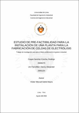 Coquis Sanchez-Concha, R. y Ure Fainzilber, D. A. (2016). Estudio de pre-factibilidad para la instalación de una planta para la fabricación de celdas de electrólisis (trabajo de investigación para optar el título profesional de Ingeniero Industrial). Universidad de Lima.Editor