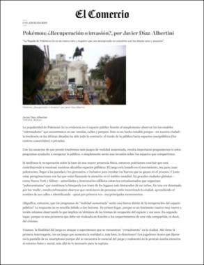 Díaz-Albertini, J. (12 de setiembre del 2016). Pokémon: ¿Recuperación o invasión? El Comercio. Recuperado de https://elcomercio.pe/opinion/colaboradores/pokemon-recuperacion-invasion-javier-diaz-albertini-257678Editor