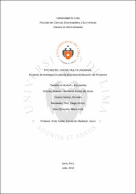 Castañeda Montaño, A., Coloma Jiménez, H. A., Duany Conroy, G., Fernández Díaz, D. A. y Neira Quesada, M. J. (2018). Proyecto: Coche multifuncional [trabajo de fin de curso]. Universidad de Lima, Facultad de Ciencias Empresariales y Económicas, Carrera de AdministraciónEditor