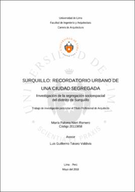 Nieri Romero, M. P. (2018). Surquillo: recordatorio urbano de una ciudad segregada. Investigación de la segregación socioespacial del distrito de Surquillo (trabajo de investigación para optar el título profesional de Arquitecto). Universidad de Lima.Editor